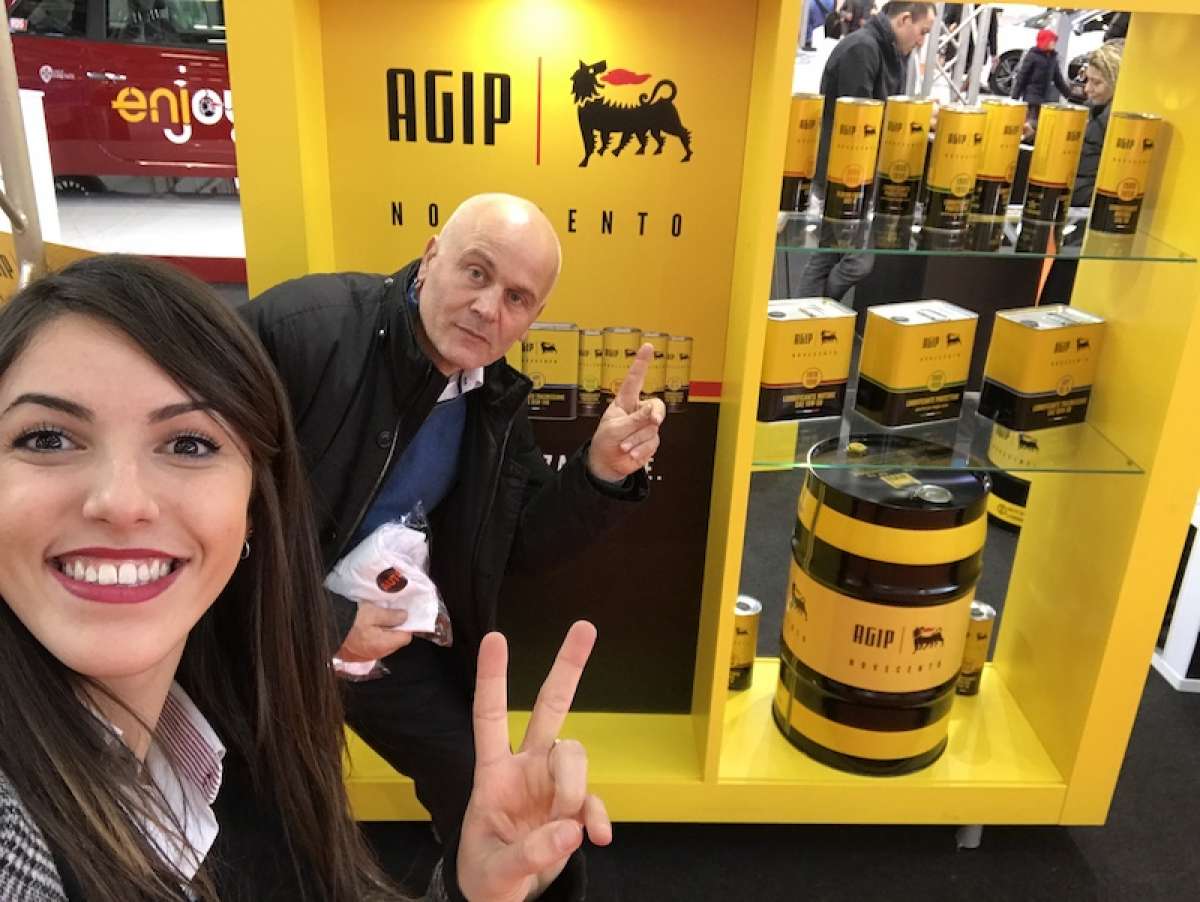 Lo stand Agip900 al Motorshow 2017 ha celebrato la storia del marchio con un’esposizione dal gusto retrò, evocando le atmosfere delle vecchie stazioni di servizio AGIP. Protagonisti dello spazio espositivo sono stati veicoli d’epoca perfettamente restaurati, pompe benzina originali anni '50, bidoni storici e una linea grafica inconfondibile. Un perfetto equilibrio tra heritage e comunicazione moderna, capace di attrarre appassionati, collezionisti e curiosi. Il progetto ha voluto trasmettere i valori di qualità e affidabilità che hanno reso il brand un’icona dell’automobilismo italiano.